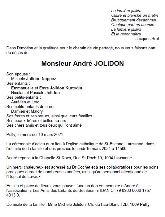 Cet avis tient lieu delettre defaire-part. Monsieur Pierre Périsset administrateur depuis 1997 et a pris sa retraite. Aigle Broye-Vully Gros-de-Vaud Jura - Nord Vaudois Lausanne Lavaux - Oron Morges Nyon Ouest Lausannois Riviera - Pays dEnhaut. Annonce du lieu et de lheure des funérailles et de la cérémonie dadieu.